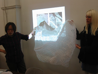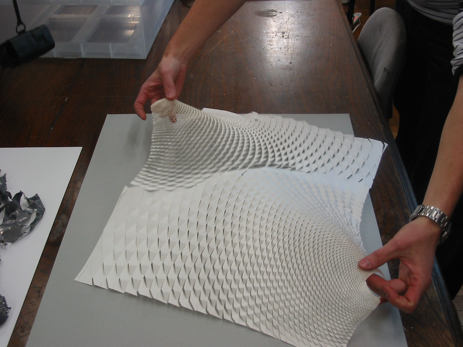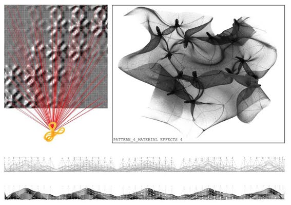A student from Tsinghua University in Beijing, China sent us those images from a workshop Yusuke conducted with AADRL’s tutor Robert Stewart-Smith and recent AA graduates Xin Wang and Soomeen Hahm last summer. The Topic of the workshop was to explore the distributional logic of dry sand via multiple outlets using only gravity to generate three-dimensional patterns. Its generative logic was simulated simultaneously with Rhino/Grass Hopper for parallel analogue/digital experiments. The top layer of the sand was then hardened with sprayed resin. 96 panels were designed and fabricated for the Beijing Biennale 2010.