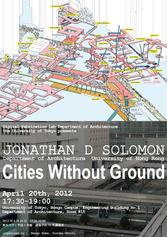 Coinciding with Jonathan Solomon’s latest publication, Cities Without Ground, a book that maps the complex three-dimensional connectivity of Hong Kong’s pedestrian passageways, this lecture explores general conditions of the aformal through specific exploration of three buildings in Hong Kong that while outside mainstream histories of the city’s development exhibit unique qualities and three architectural proposals that exacerbate them.