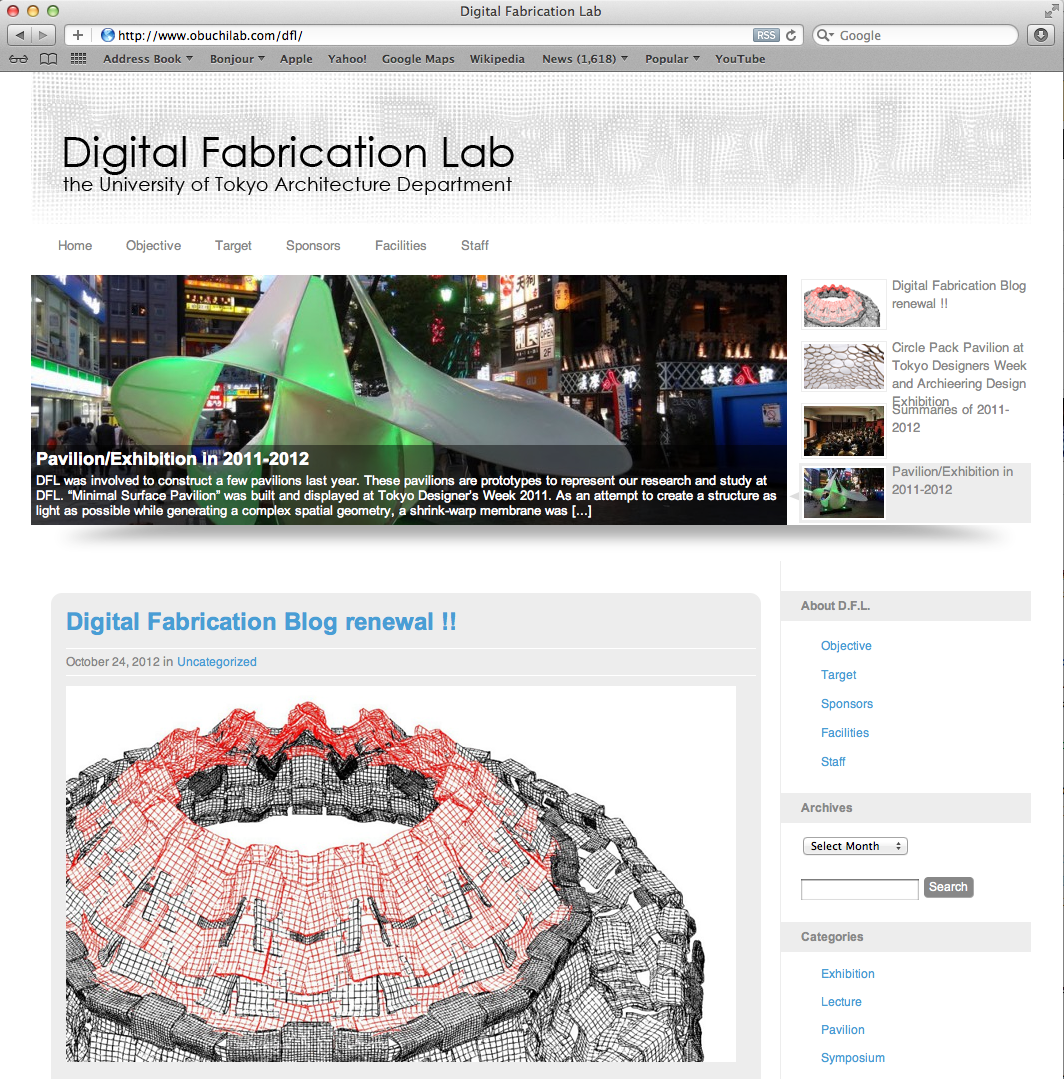 Circle Pack Pavilion was reassembled at Architectural Institute of Japan(AIJ) for Archieering Design Exhibition 2012. This event was organized to connect architecture and structural engineering design. The pavilion will be exhibited until Nov. 25th.