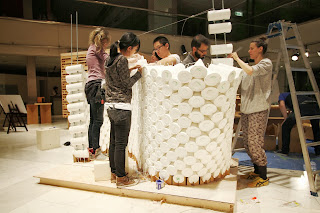 Different brick is about developing an innovative masonry system based on simple production methods fully supported by highly customized digital tools. It challenges the non-standarized manufacturing processes through the application of computational design in architectural discourse. The production system produces compressed, round-edged, differentiated bricks that can generate doubly curved surfaces when stacked.The main goal was to construct the geometry without using geometrical formwork. For the purpose of the competition, team members proposed a doubly curved wall composed of 600 different bricks.