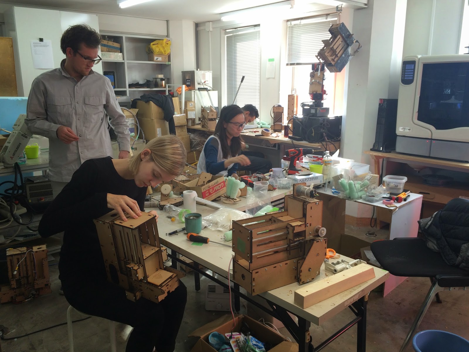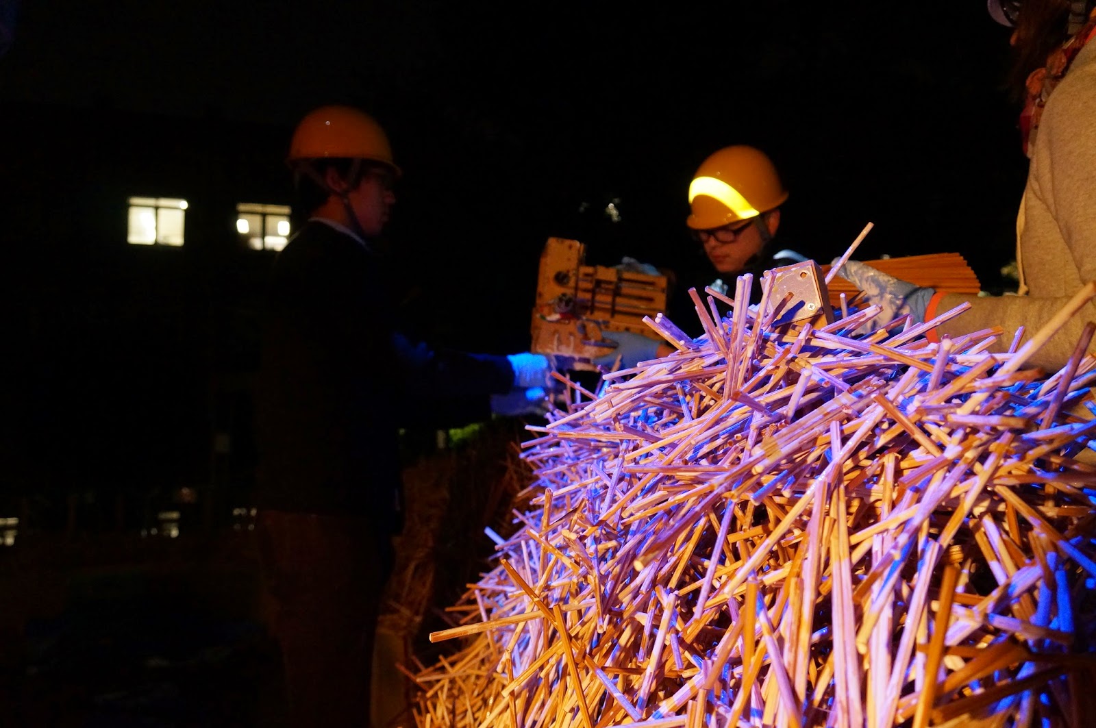 Our proposal is a network of human-driven 3D printing devices, which we call STIK (Smart Tool Integrated Konstruction). The basic component for the system is a chopstick, ‘waribashi’ which is a recycled material collected from an industrial chopstick production process. By controlling the way that these sticks are locally distributed, we can aggregate them into a specific geometry that is inherently stable. A scanning system monitors the printing process, sending data to the network, which is compared to the overall digital target geometry. The network then feeds back to each distribution node, controlling the progress of the structure.