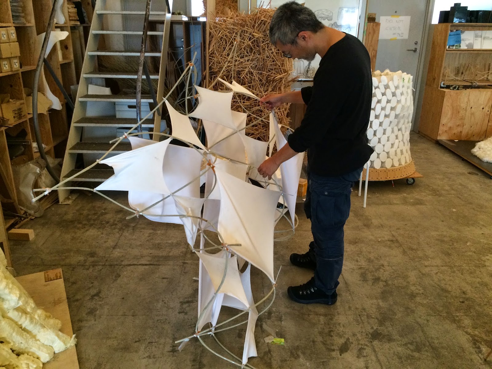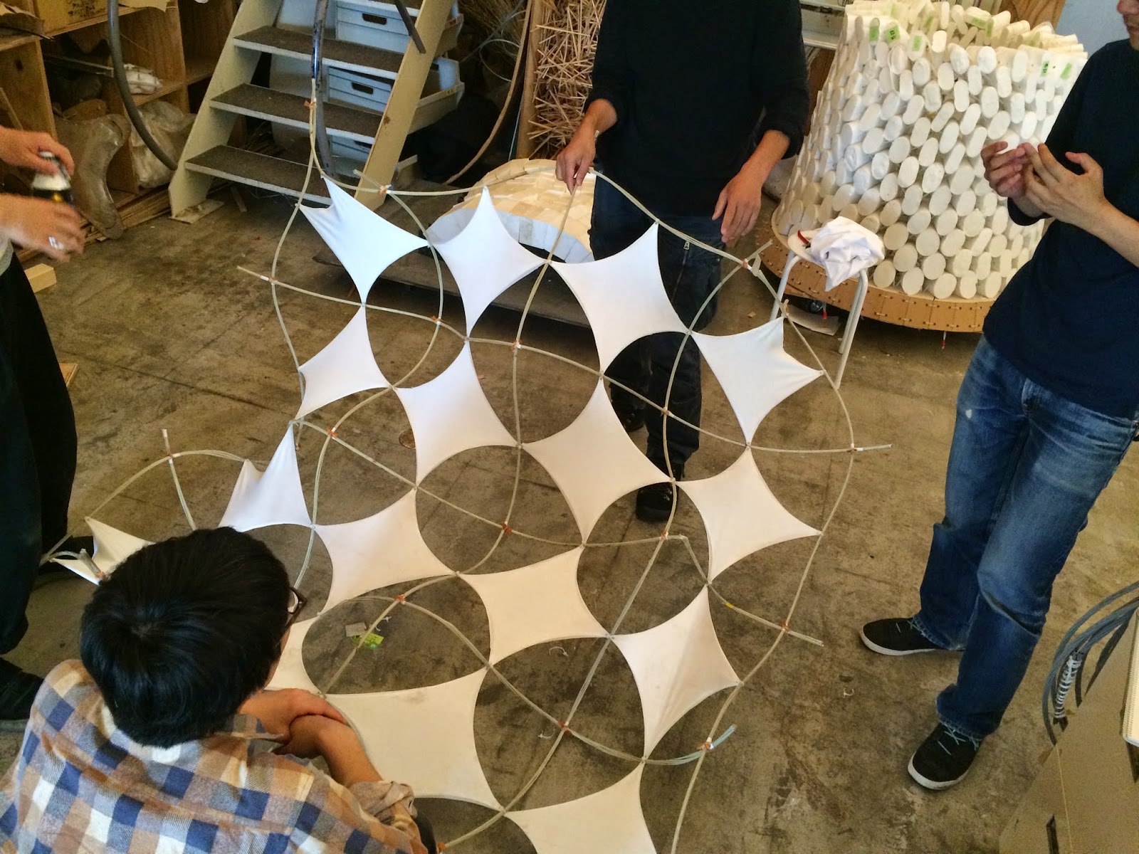On May 8, 1st year students in Digital Fabrication Lab (DFL) had their mid-term review, which was joined by this year’s pavilion sponsor, Takenaka Corporation. We were also joined by collaborators Prof. Igarashi (computer science) and Prof. Sato (structural engineering), and there were lively and informative exchanges between all participants. The participants from Takenaka Corporation asked many pointed questions from pragmatic, construction-centric perspectives. Students will incorporate the points raised throughout the review into their final pavilion designs and proposals.
